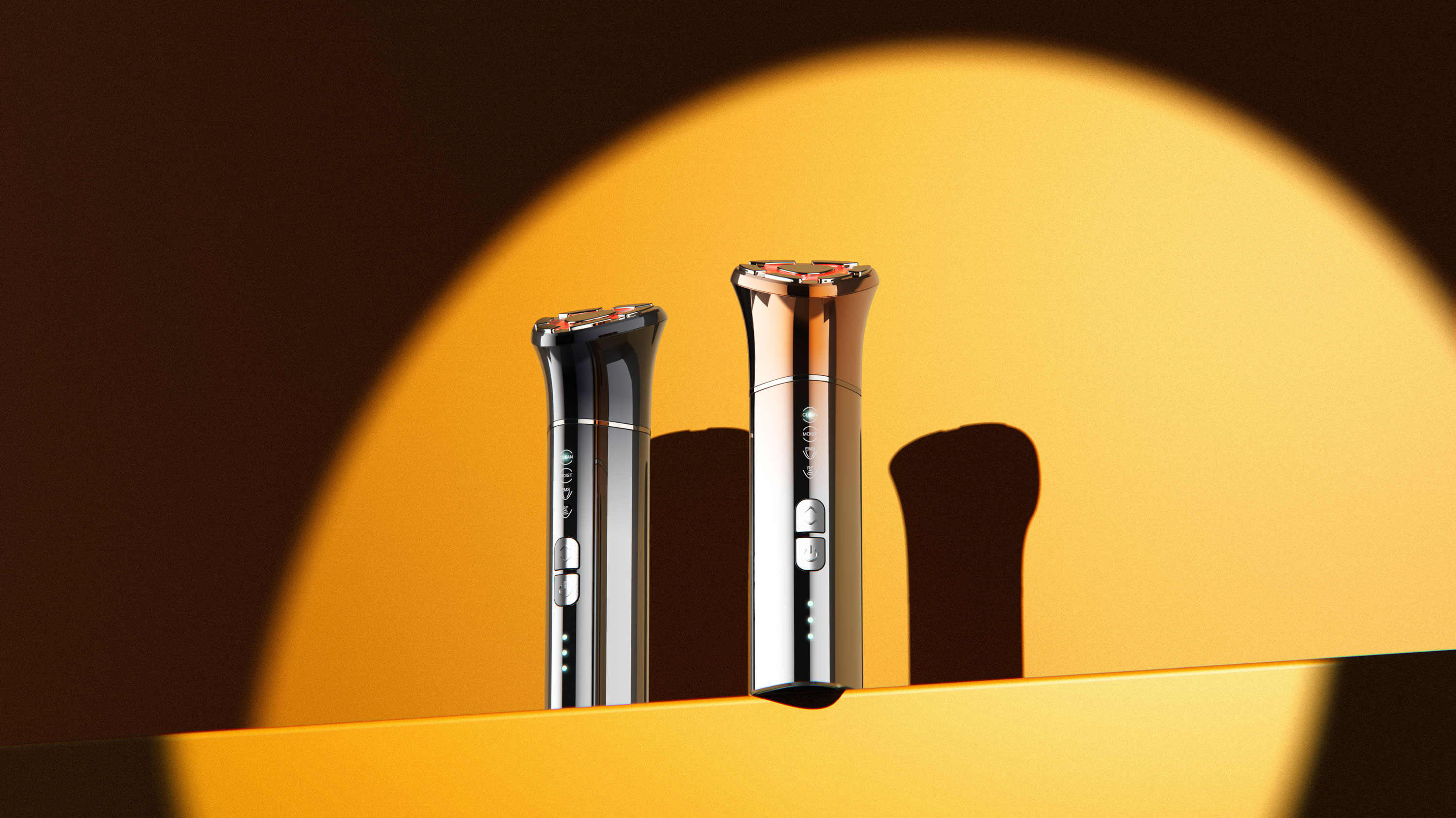 設(shè)計整體采用幾何構(gòu)成,握持舒適.頭部是三角形特征.符合當(dāng)下簡約設(shè)計風(fēng)格.采用雙頻紅藍(lán)光兩種光源,有助于改善熬夜,淡印提亮,讓肌膚重回年輕活力.